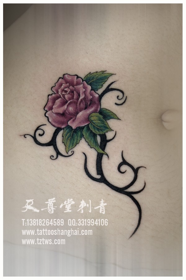性感蕾丝玫瑰腹部纹身_玫瑰花纹身图案大全_纹身图吧