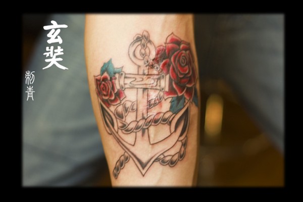 玫瑰和船锚_玫瑰花纹身图案大全_纹身图吧