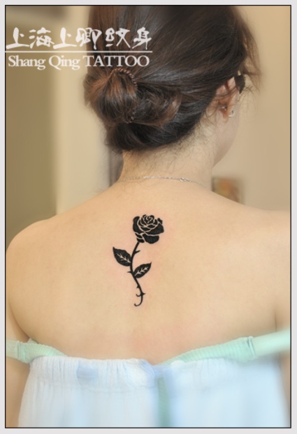 女生个性后颈黑白玫瑰唯美纹身_玫瑰花纹身图案大全_纹身图吧