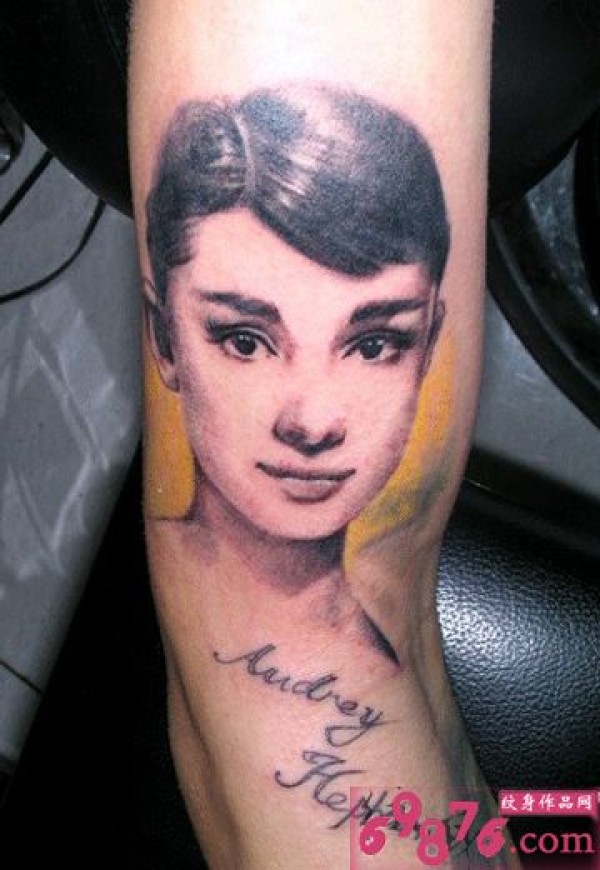 女星奥黛丽赫本肖像手臂刺青_明星纹身图案大全_纹身图吧