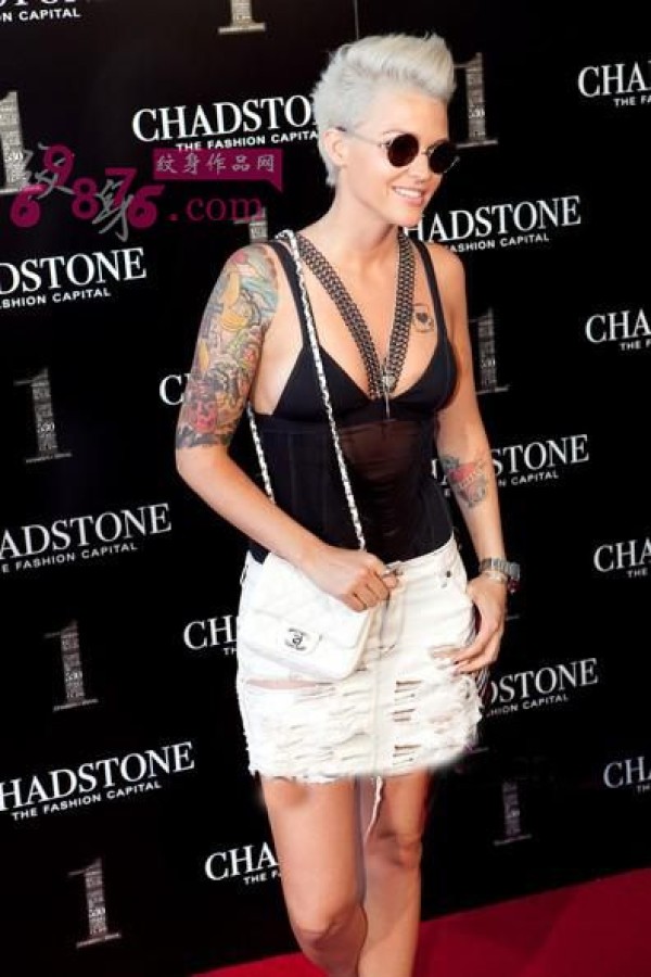 鲁比·洛斯胸前个性纹身_明星纹身图案大全_纹身图吧