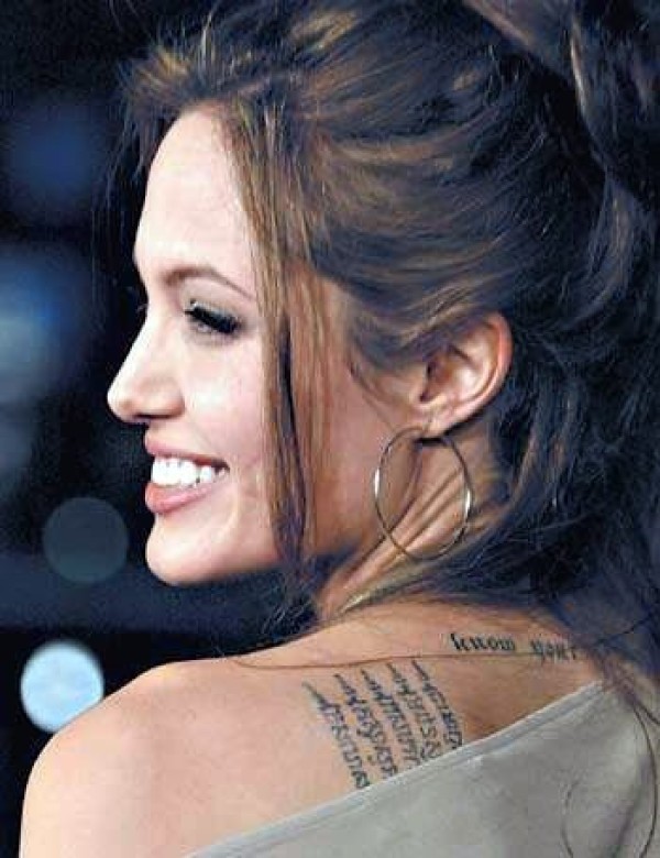 明星安吉丽娜茱莉背上字符刺青_明星纹身图案大全_纹身图吧