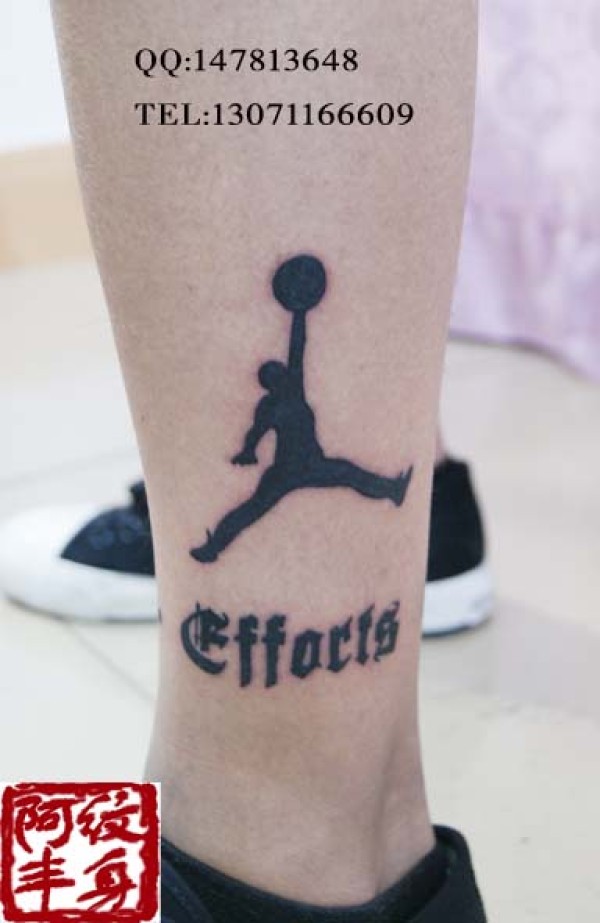腿部NBA扣篮图案纹身这个纹身很适合篮球爱好者_明星纹身图案大全_纹身图吧