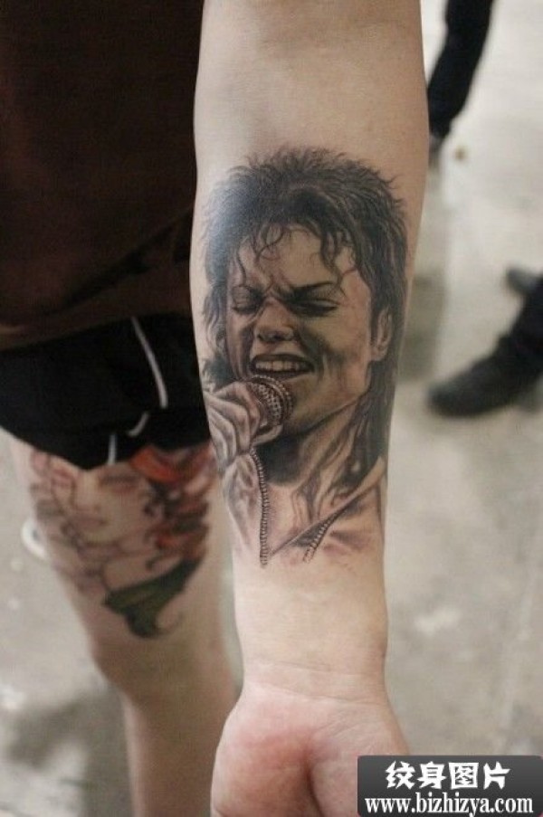 明星头像杰克逊手臂纹身图案图片_明星纹身图案大全_纹身图吧
