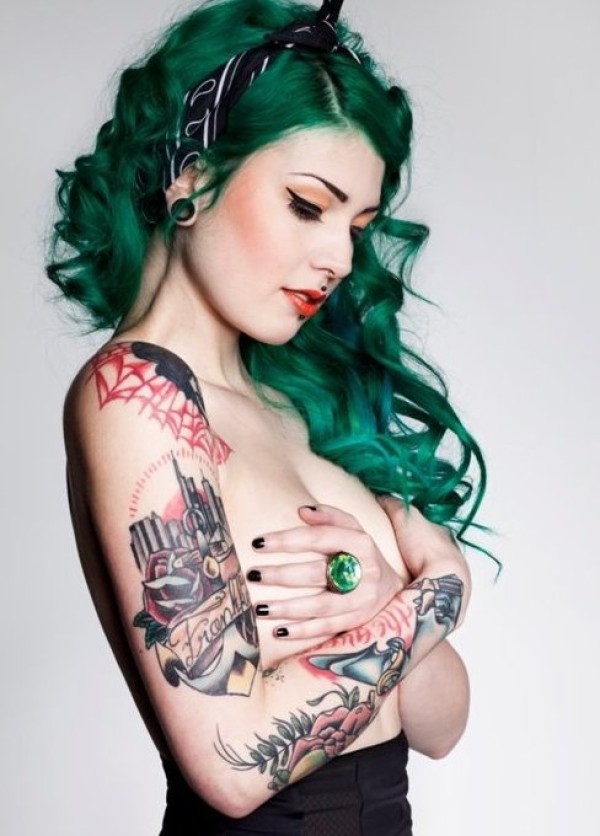 彩色半胛美女纹身_女生纹身图案大全_纹身图吧