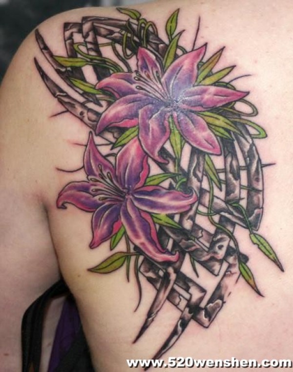 性感美女背部美丽水仙纹身图片_女生纹身图案大全_纹身图吧