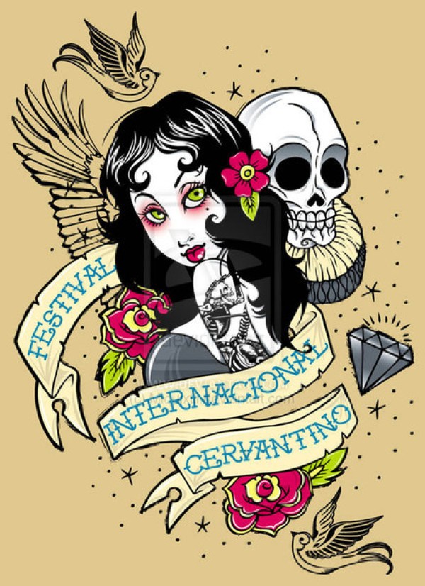 靓丽美女与骷髅头纹身_女生纹身图案大全_纹身图吧