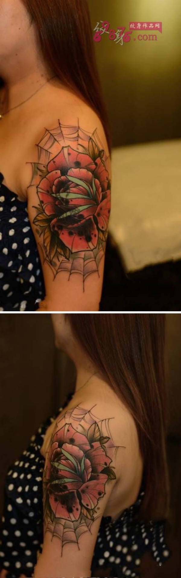 女生创意蜘蛛网花手臂纹身_女生纹身图案大全_纹身图吧