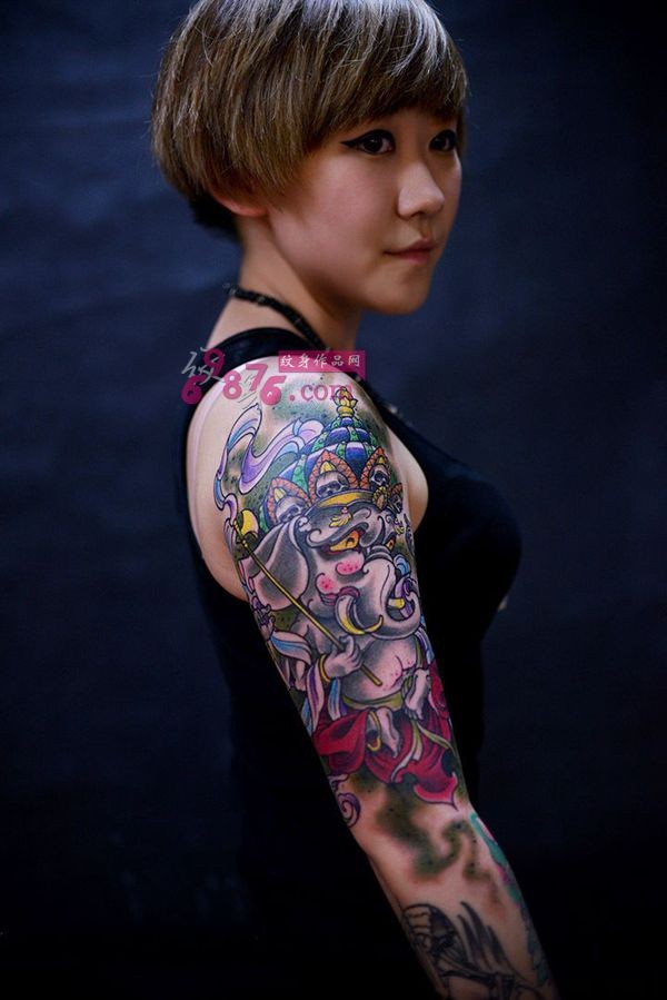 美女彩绘象神霸气花臂_女生纹身图案大全_纹身图吧
