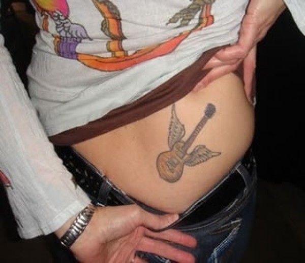 女生后腰部的吉他刺青jitaciqing图片欣赏_女生纹身图案大全_纹身图吧