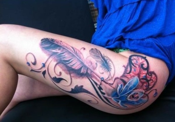 性感美女大腿极美Dreamcatcher纹身_女生纹身图案大全_纹身图吧