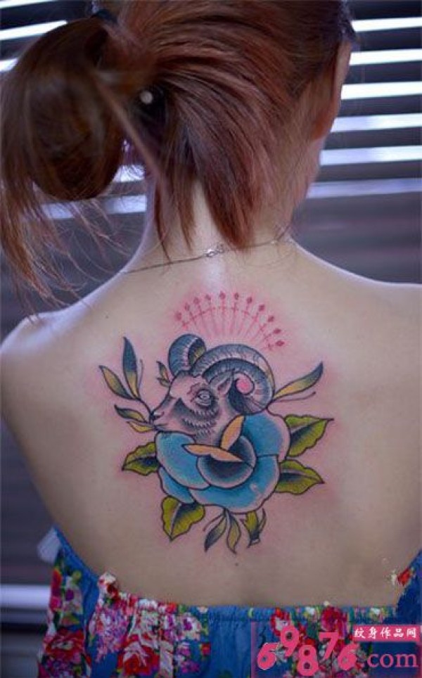 美女秀后背迷人小山羊纹身_女生纹身图案大全_纹身图吧