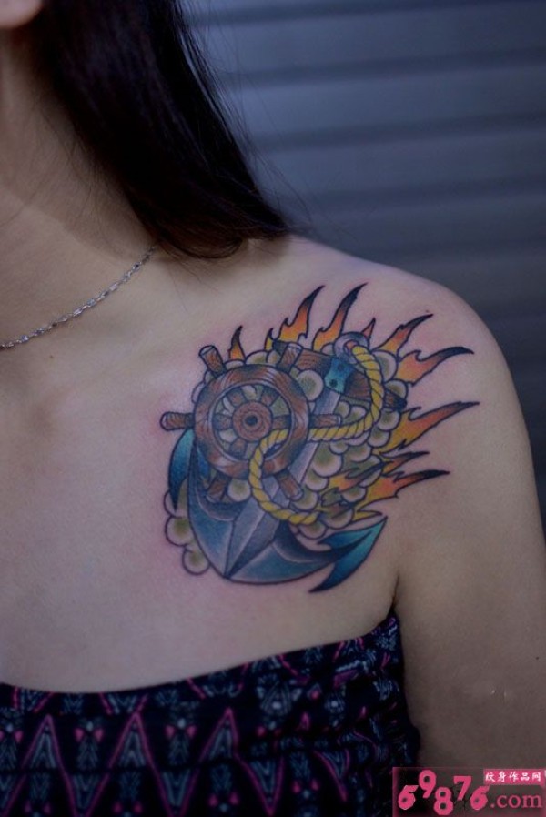 美女肩部船锚刺青_女生纹身图案大全_纹身图吧