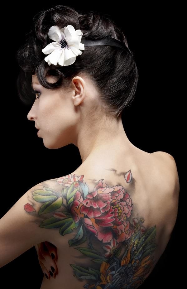 性感优雅美女背部富贵牡丹纹身图片_女生纹身图案大全_纹身图吧
