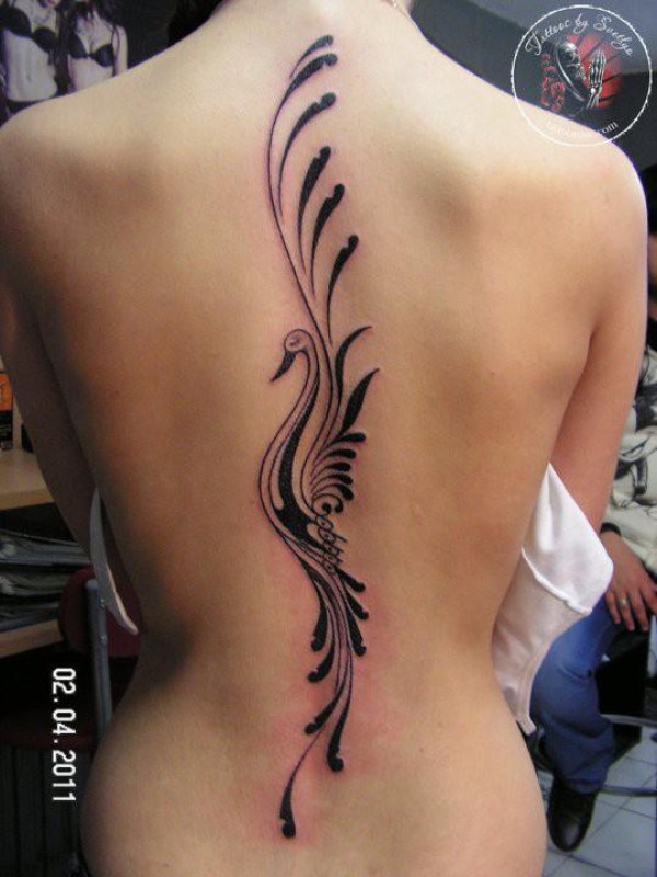 性感美女背部艺术鸟儿纹身图片_女生纹身图案大全_纹身图吧