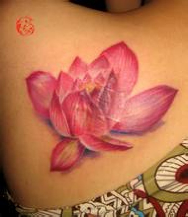 美女肩部粉色莲花纹身图片_女生纹身图案大全_纹身图吧