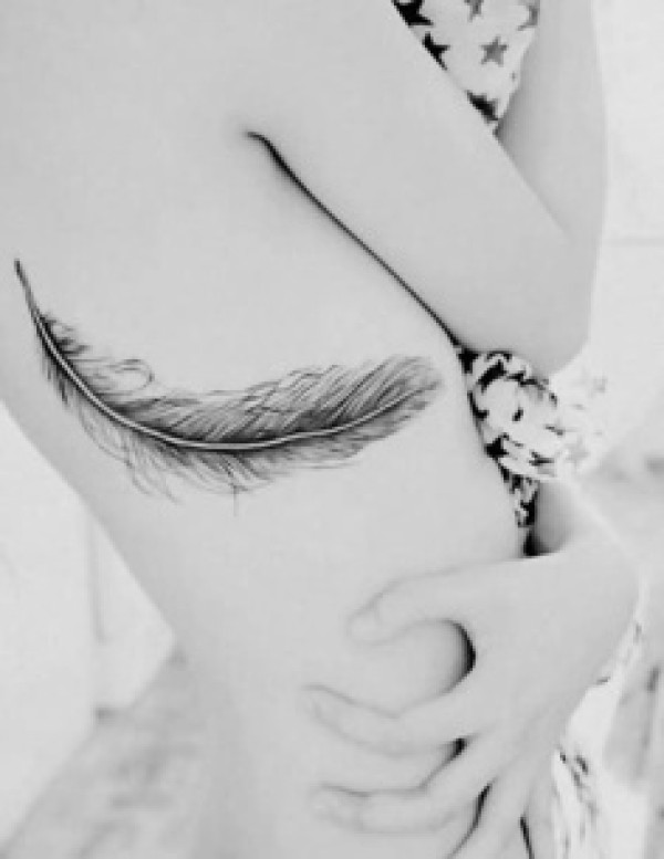 美女腰部唯美轻柔羽毛纹身图_女生纹身图案大全_纹身图吧