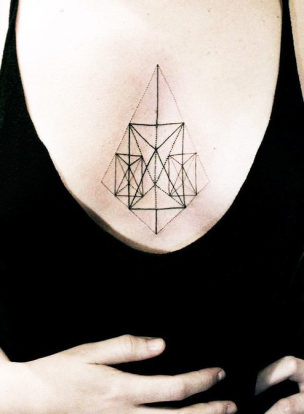 女孩胸部性感立体几何刺青图_女生纹身图案大全_纹身图吧