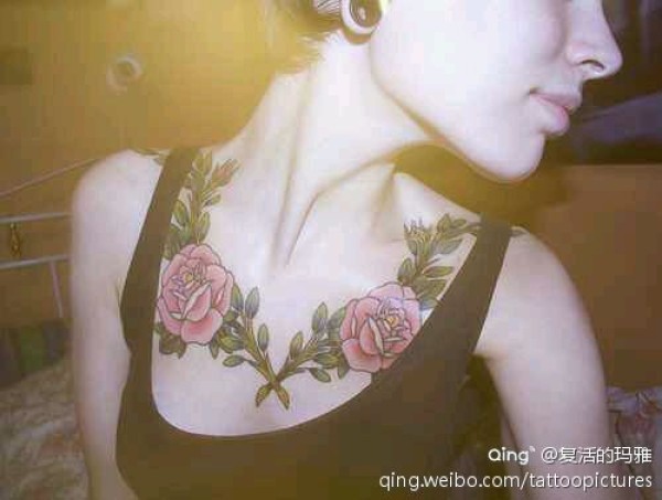 女生胸前性感两支梅刺青_女生纹身图案大全_纹身图吧