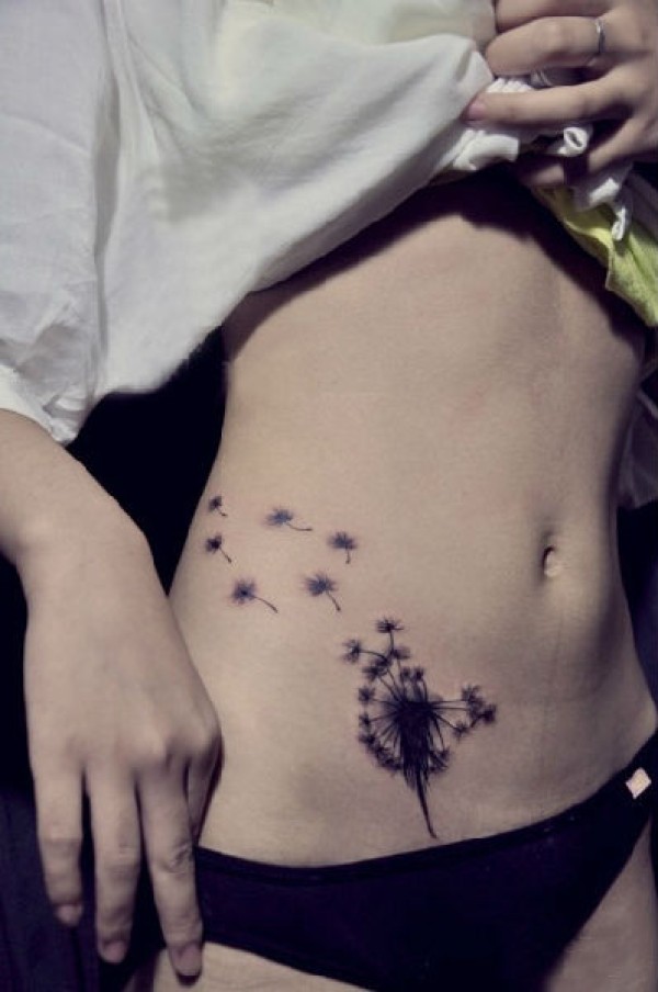 美女小腹上飞扬的蒲公英图案_女生纹身图案大全_纹身图吧