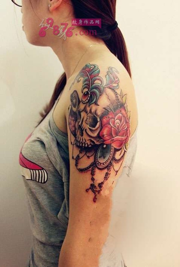 骷髅钻石女生手臂纹身_女生纹身图案大全_纹身图吧