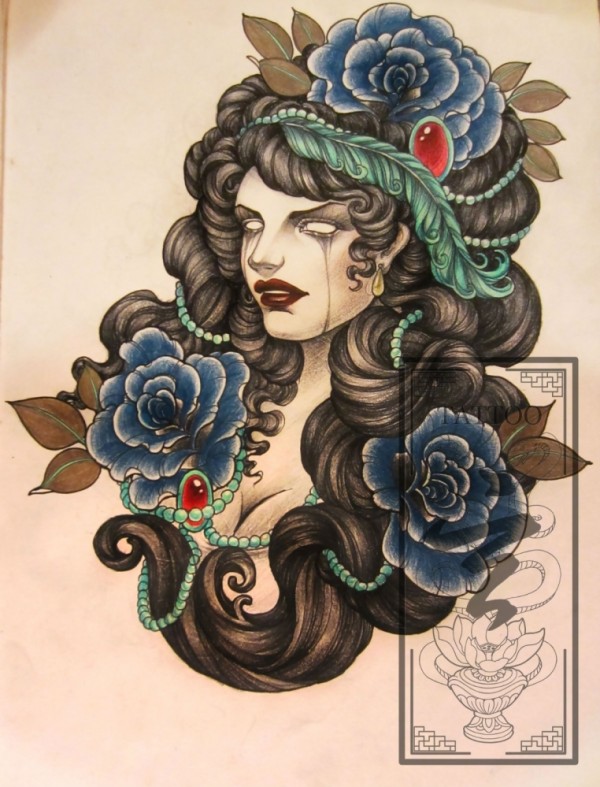 彩色半胛美女纹身_女生纹身图案大全_纹身图吧
