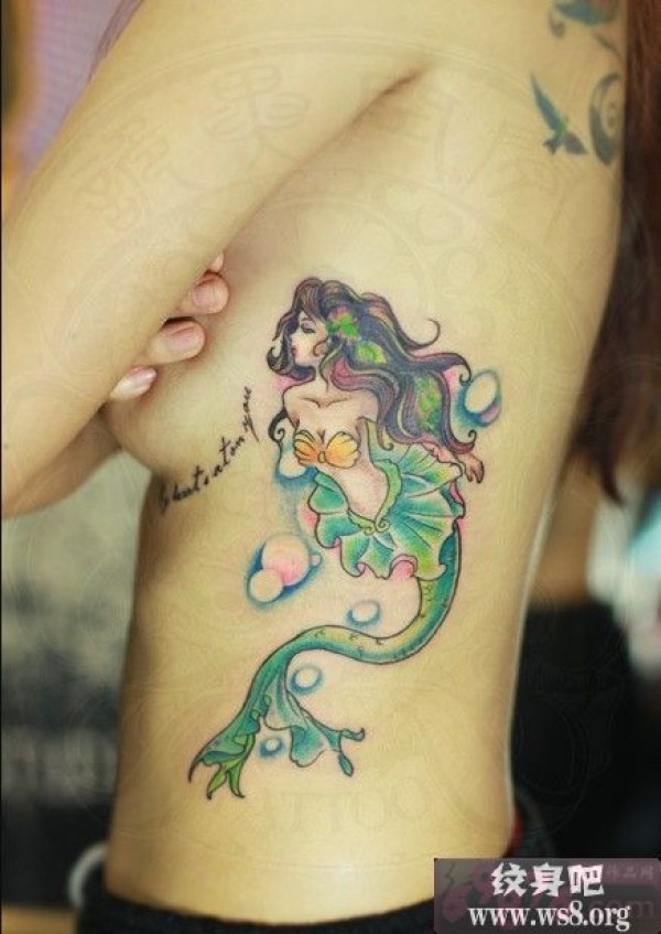 侧腰性感小美人鱼xiaomeirenyu图案_女生纹身图案大全_纹身图吧