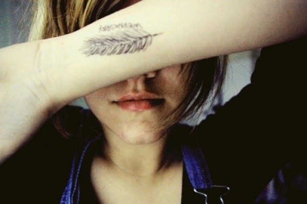 欧美女性手臂羽毛漂亮刺青_女生纹身图案大全_纹身图吧