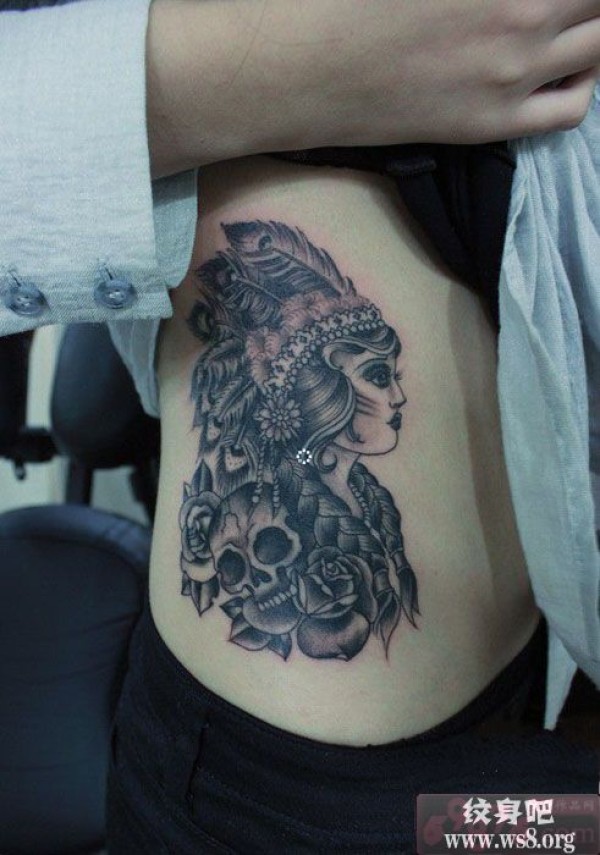 印第安美女骷髅腰部纹身图案_女生纹身图案大全_纹身图吧