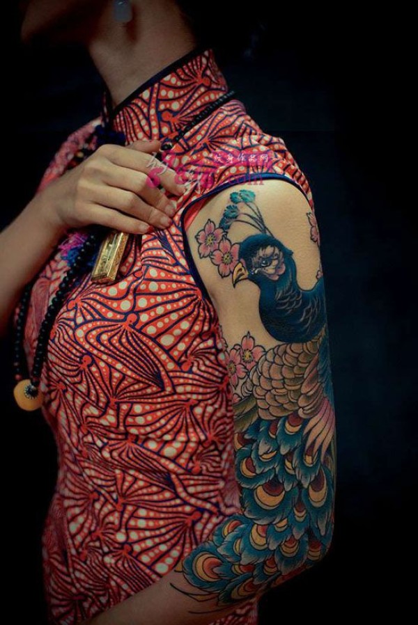 美女花臂孔雀个性纹身_女生纹身图案大全_纹身图吧