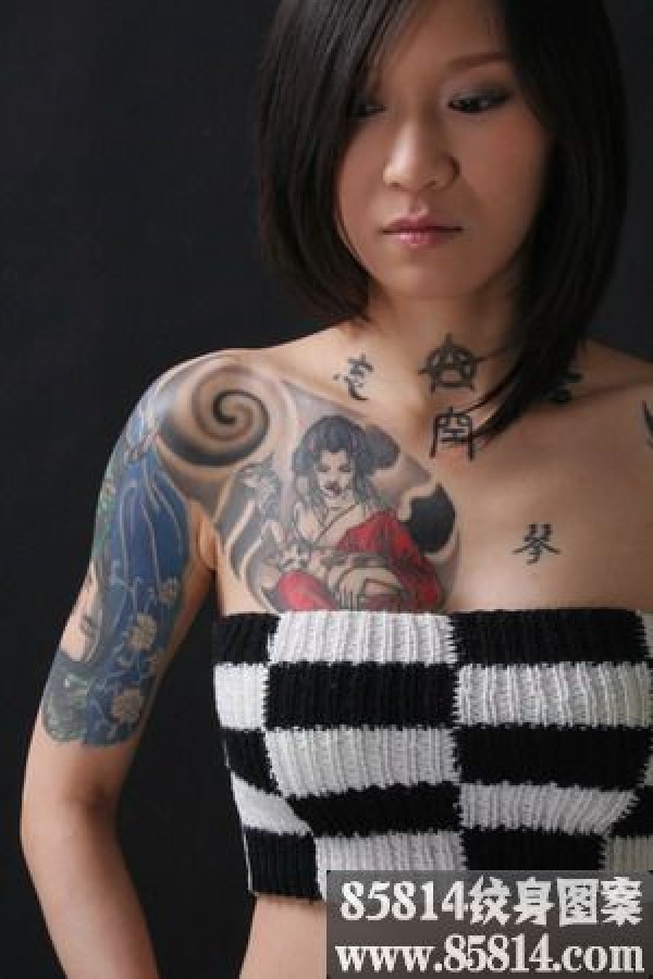 美女肩部半甲日本艺妓纹身_女生纹身图案大全_纹身图吧