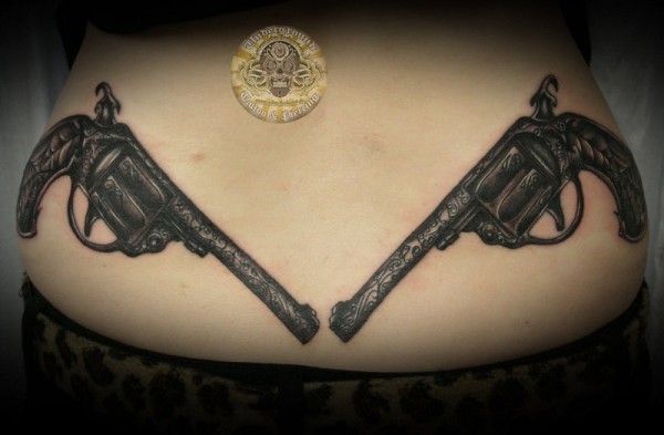 霸气美女腹部手枪纹身_女生纹身图案大全_纹身图吧