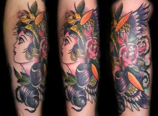 彩色半胛美女纹身_女生纹身图案大全_纹身图吧