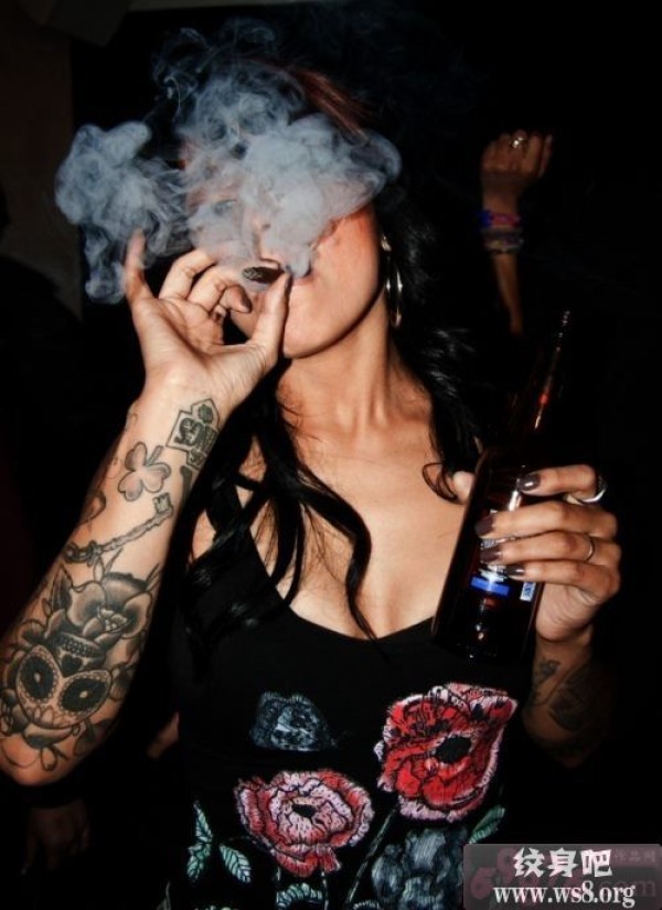 抽烟女生手臂颓废个性刺青图案_女生纹身图案大全_纹身图吧