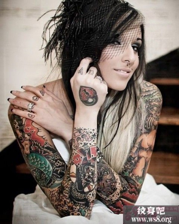 个性美女欧美花臂刺青图案_女生纹身图案大全_纹身图吧