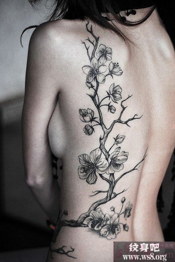 美女背部性感梅花纹身_女生纹身图案大全_纹身图吧