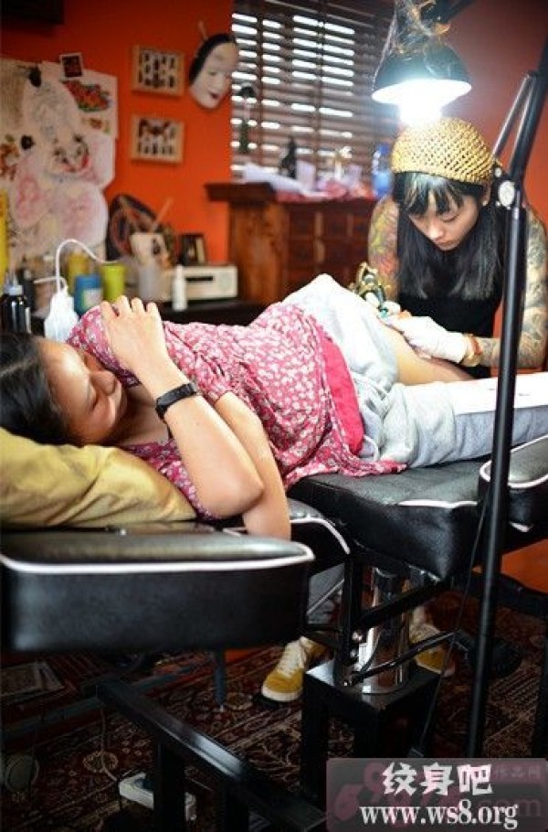 美女刺青师小腿刺青现场图案_女生纹身图案大全_纹身图吧