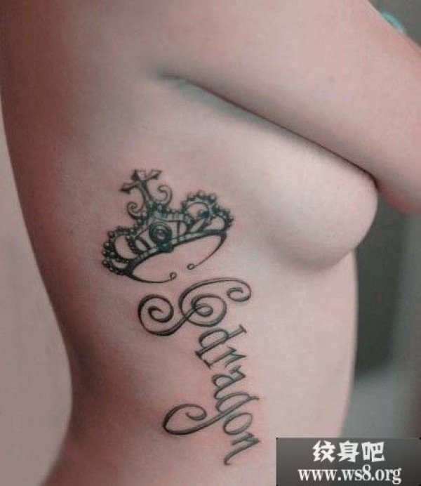 美女侧胸皇冠与字母图案纹身_女生纹身图案大全_纹身图吧