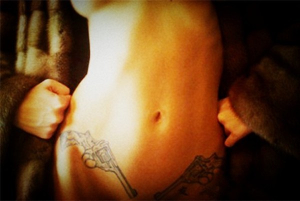 女生腹部个性手枪欧美纹身图案_女生纹身图案大全_纹身图吧
