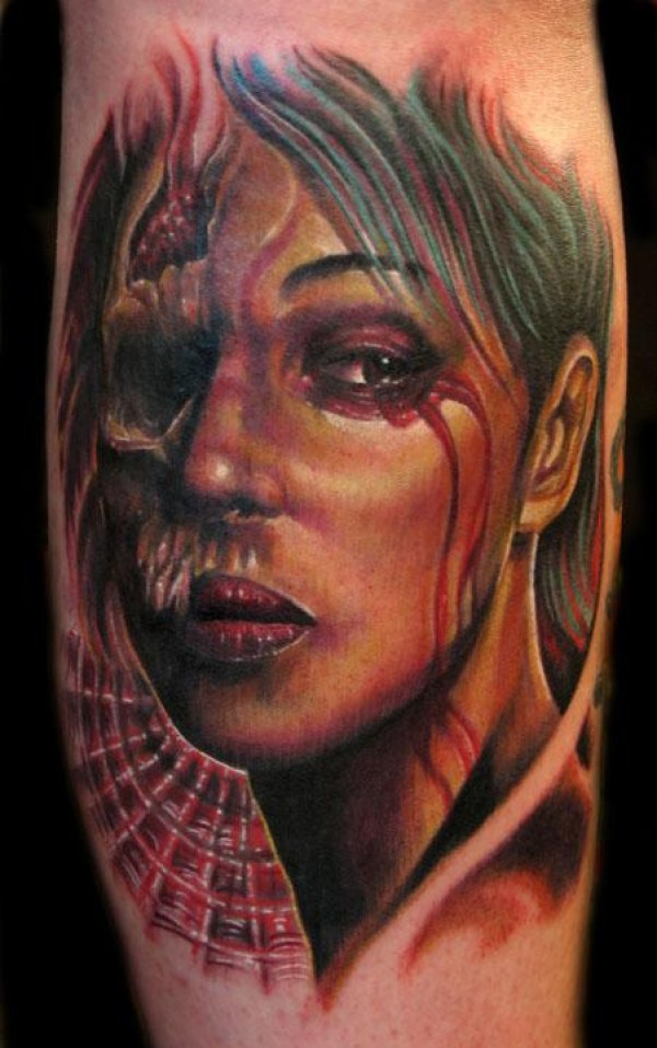 彩色半胛美女纹身_女生纹身图案大全_纹身图吧