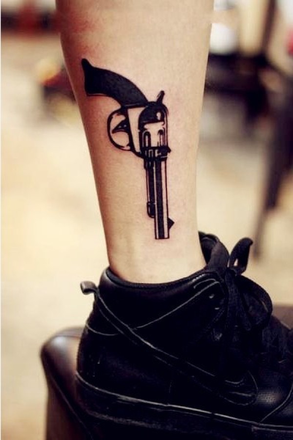 女生脚臂黑色手枪个性欧美纹身图片图案_女生纹身图案大全_纹身图吧