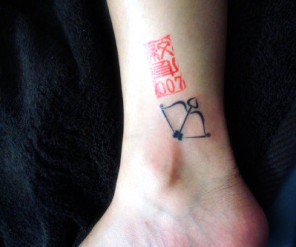女生脚部弓箭图腾纹身图片图案_女生纹身图案大全_纹身图吧