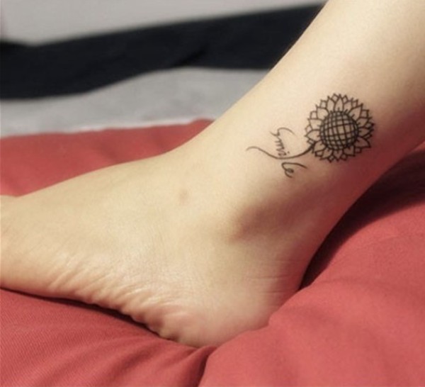 女生脚部黑色向日葵有爱向阳纹身图片图案_女生纹身图案大全_纹身图吧