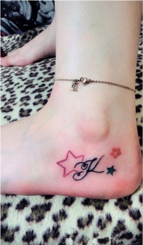 女生脚部彩色星星可爱女生专属纹身图片图案_女生纹身图案大全_纹身图吧