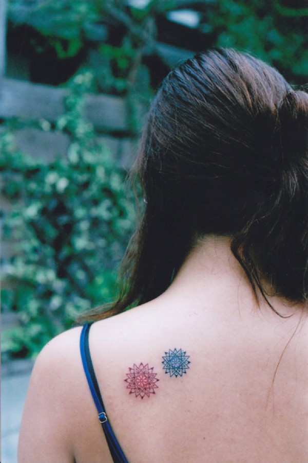 女生肩部彩色雪花图腾纹身图案图片_女生纹身图案大全_纹身图吧