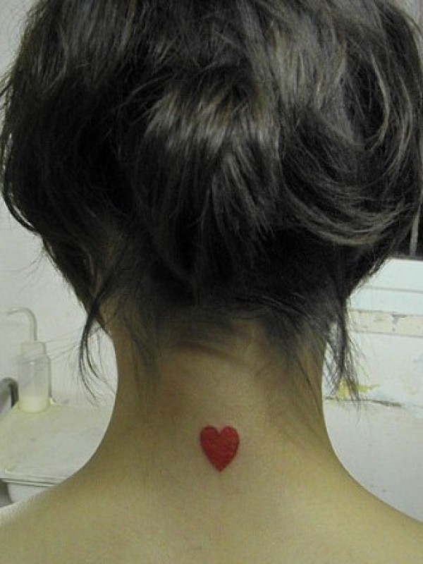 女生颈部彩色心形纹身_女生纹身图案大全_纹身图吧