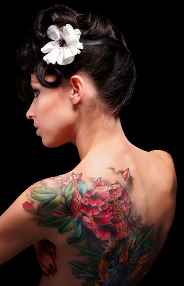 女生背部牡丹花纹身_女生纹身图案大全_纹身图吧