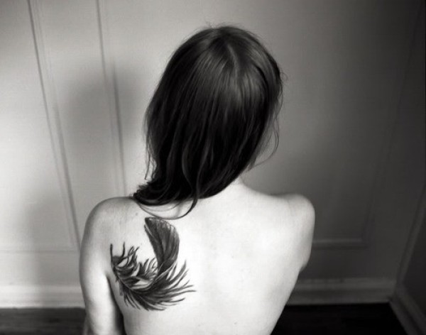 女生背部羽毛纹身_女生纹身图案大全_纹身图吧