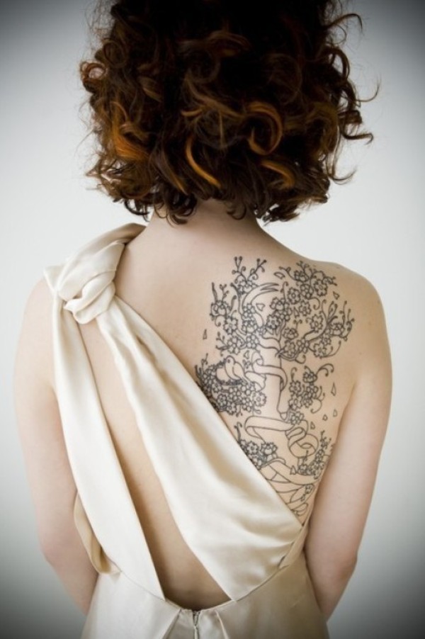 女生性感背部桃花树唯美纹身_女生纹身图案大全_纹身图吧