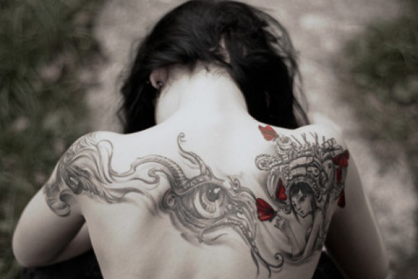 女生后背图腾抽象纹身_女生纹身图案大全_纹身图吧
